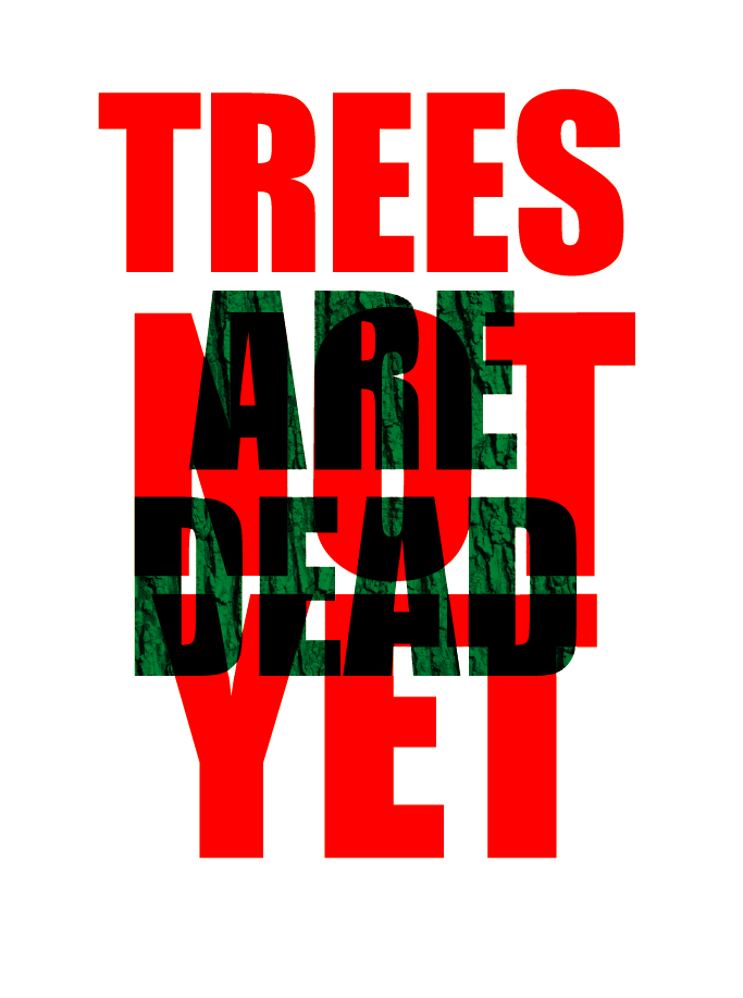 and bold type to grab people’s attention at a distance. I placed the type DEATH TO TREES in red